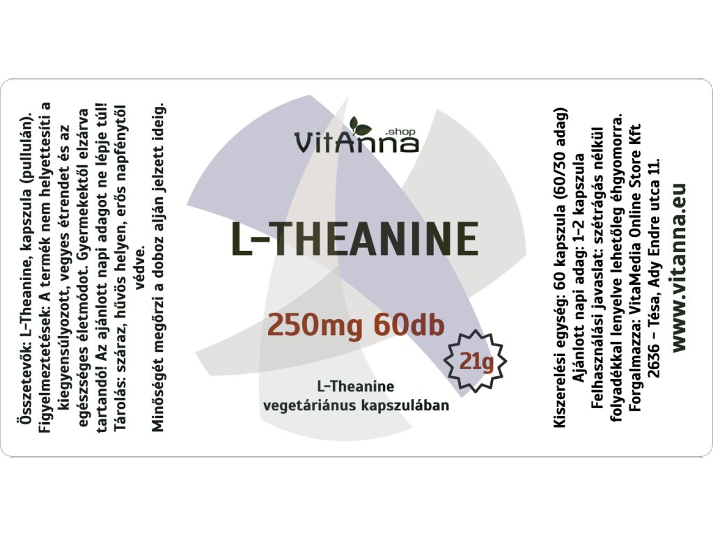 Összetevők: L-Theanine, kapszulahéj (Hidroxipropil-metil-cellulóz).